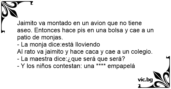 Jaimito va montado en un avion que no tiene aseo. Entonces hace pis en una bolsa y cae a un patio de monjas.