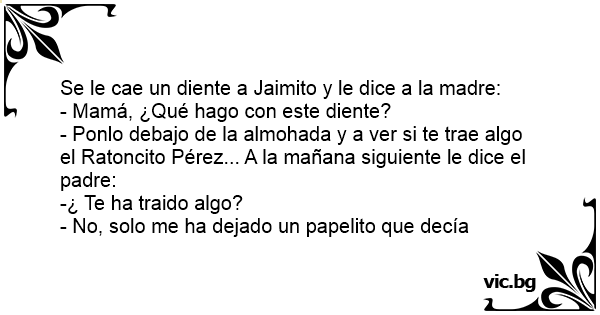 - Ponlo debajo de la almohada y a ver si te trae algo el Ratoncito Pérez... A la mañana siguiente le dice el padre: