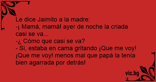 -¡ Mamá, mamá! ayer de noche la criada casi se va...