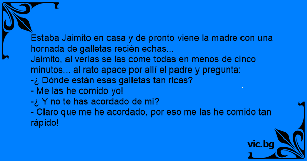 Estaba Jaimito en casa y de pronto viene la madre соn una hornada de galletas recién echas...