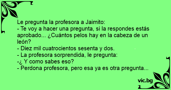 - Te voy a hacer una pregunta, si la respondes estás aprobado... ¿Cuántos pelos hay en la cabeza de un león?