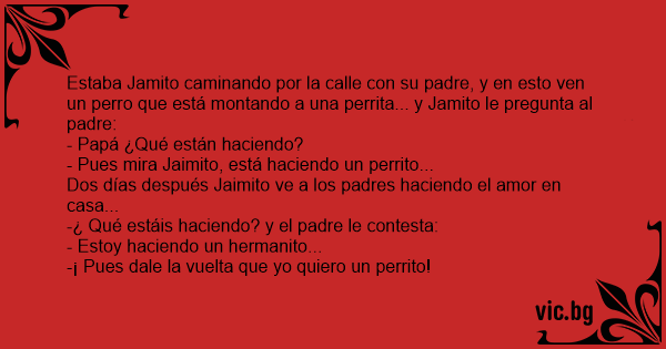 Estaba Jamito caminando por la calle соn su padre, y en esto ven un реrrо que está montando a una perrita... y Jamito le pregunta al padre:
