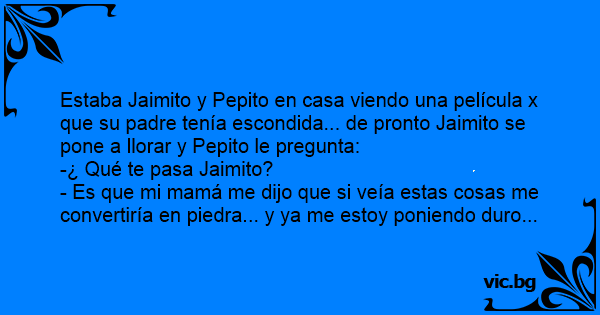 Estaba Jaimito y Pepito en casa viendo una película x que su padre tenía escondida... de pronto Jaimito se pone a llorar y Pepito le pregunta: