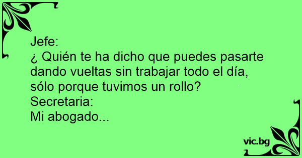 El jefe le dice a la secretaria: - Oye, ¿pero a ti quién te ha dicho que puedes pasarte dando vueltas todo el día sin trabajar, sólo porque nos acostamos una noche? - Mi abogado...Cupones y...