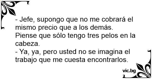 - Jefe, supongo que no me cobrará el mismo precio que a los demás. Piense que sólo tengo tres pelos en la cabeza.
