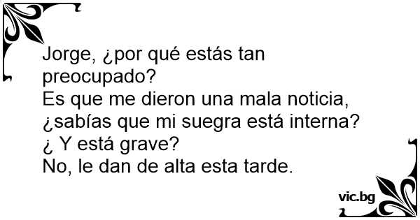 Es que me dieron una mala noticia, ¿sabías que mi suegra está interna?