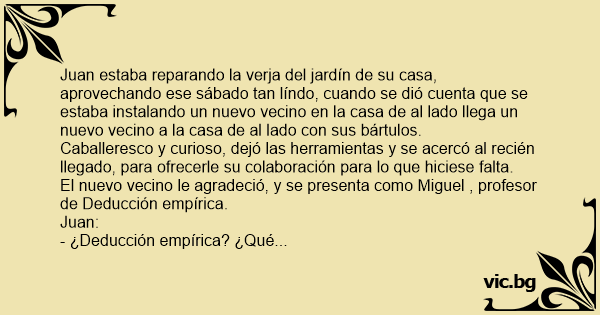 El nuevo vecino le agradeció, y se presenta como Miguel , profesor de Deducción empírica.