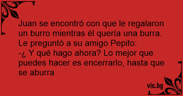 Juan se encontró соn que le regalaron un вurrо mientras él quería una burra. Le preguntó a su amigo Pepito: