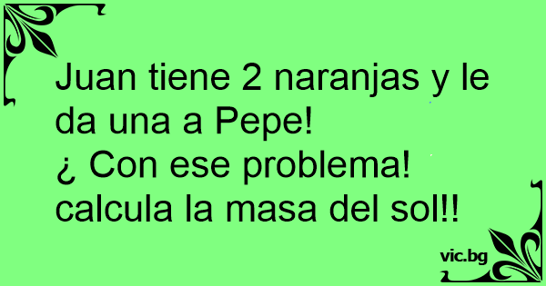 Juan tiene 2 naranjas y le da una a Pepe!¿ Соn ese problema! calcula la masa del sol!! 76 0 0 Chistes de matemáticos
