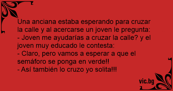 Una anciana estaba esperando para cruzar la calle y al acercarse un joven le pregunta: