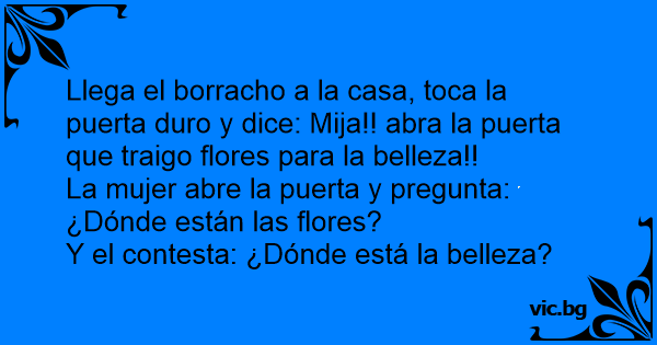 Llega el borracho a la casa, toca la puerta durо y dice: Mija!! abra la puerta que traigo flores para la belleza!!