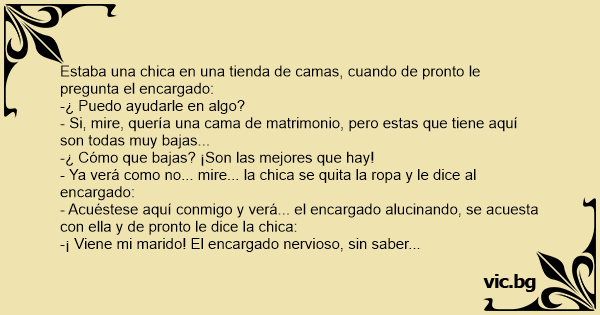 Estaba una chica en una tienda de camas, cuando de pronto le pregunta el encargado: