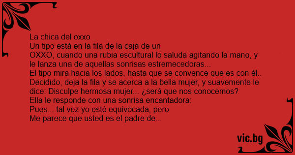 OXXO, cuando una rubia escultural lo saluda agitando la mano, y le lanza una de aquellas sonrisas estremecedoras...
