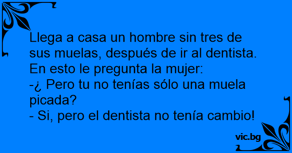 Llega a casa un hombre sin tres de sus muelas, después de ir al dentista. En esto le pregunta la mujer: