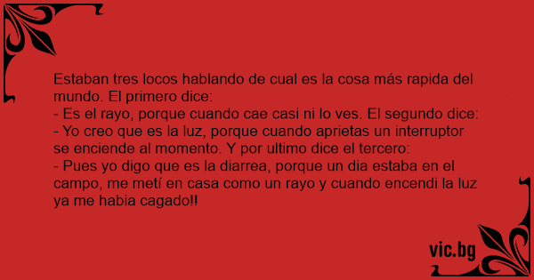 Estaban tres locos hablando de cual es la cosa más rapida del mundo. El primero dice:
