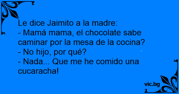 - Mamá mama, el chocolate sabe caminar por la mesa de la cocina?