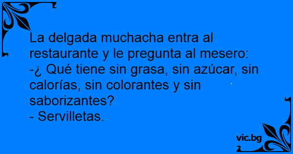 La delgada muchacha entra al restaurante y le pregunta al mesero: