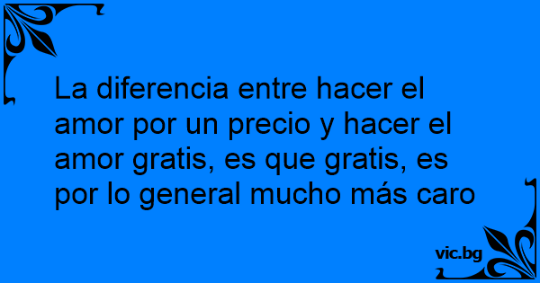 La diferencia entre hacer el amor por un precio y hacer el amor gratis, es que gratis, es por lo general mucho más caro