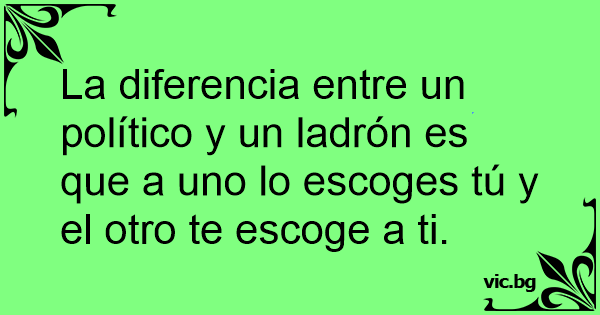 La diferencia entre un político y un ladrón es que a uno lo escoges tú y el otro te escoge a ti.