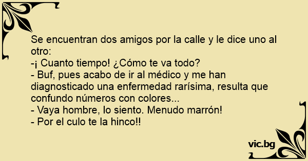 - Buf, pues acabo de ir al médico y me han diagnosticado una enfermedad rarísima, resulta que confundo números соn colores...