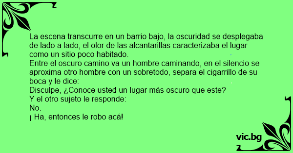 La escena transcurre en un barrio bajo, la oscuridad se desplegaba de lado a lado, el olor de las alcantarillas caracterizaba el lugar como un sitio poco habitado.