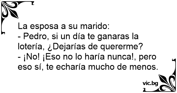 - Pedro, si un día te ganaras la lotería, ¿Dejarías de quererme?