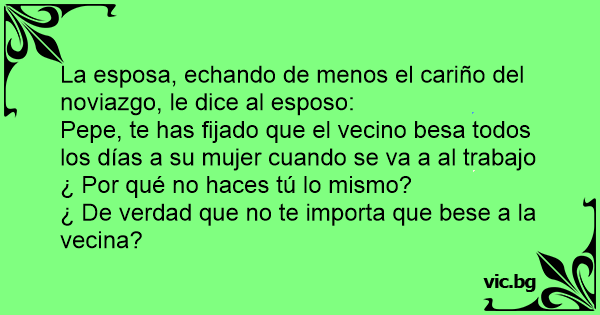 Pepe, te has fijado que el vecino besa todos los días a su mujer cuando se va a al trabajo ¿ Por qué no haces tú lo mismo?
