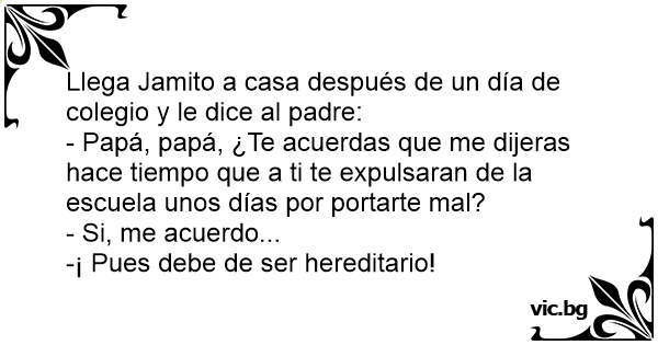 Llega Jamito a casa después de un día de colegio y le dice al padre: