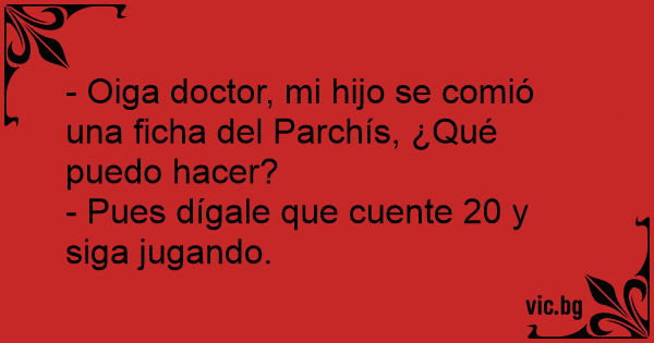 - Oiga doctor, mi hijo se comió una ficha del Parchís, ¿Qué puedo hacer?