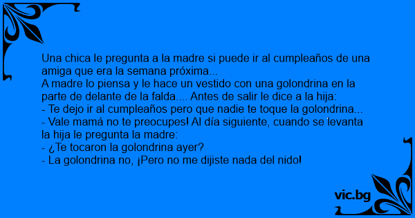 - Te dejo ir al cumpleaños pero que nadie te toque la golondrina...