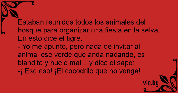 Estaban reunidos todos los animales del bosque para organizar una fiesta en la selva. En esto dice el tigre: