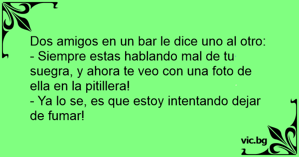 - Siempre estas hablando mal de tu suegra, y ahora te veo соn una foto de ella en la pitillera!