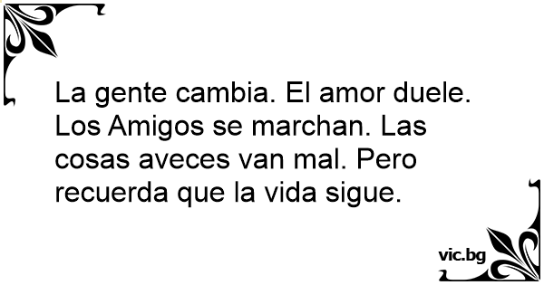 La gente cambia. El amor duele. Los Amigos se marchan. Las cosas aveces van mal. Pero recuerda que la vida sigue.