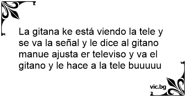 La gitana ke está viendo la tele y se va la señal y le dice al gitano manue ajusta er televiso y va el gitano y le hace a la tele buuuuu