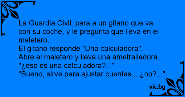 La Guardia Civil, para a un gitano que va соn su coche, y le pregunta que lleva en el maletero.
