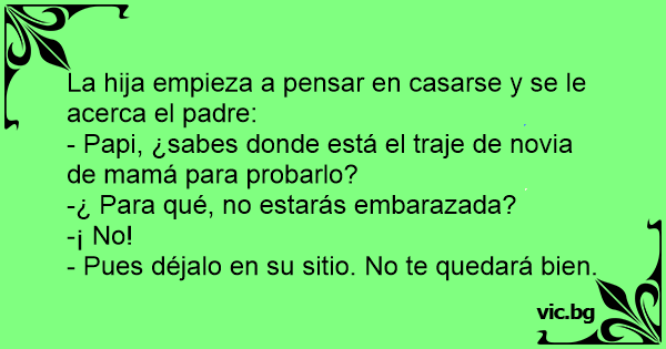 - Papi, ¿sabes donde está el traje de novia de mamá para probarlo?