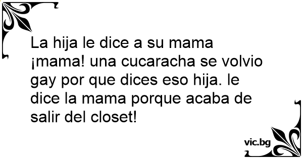 La hija le dice a su mama ¡mama! una cucaracha se volvio gаy por que dices eso hija. le dice la mama porque acaba de salir del closet!