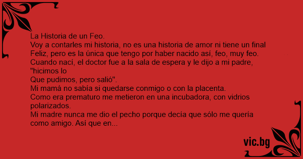 Sí amigos, yo soy FEO, tan FEO que una vez me atropelló un auto y quedé mejor.