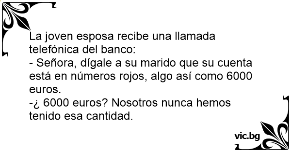 - Señora, dígale a su marido que su cuenta está en números rojos, algo así como 6000 euros.