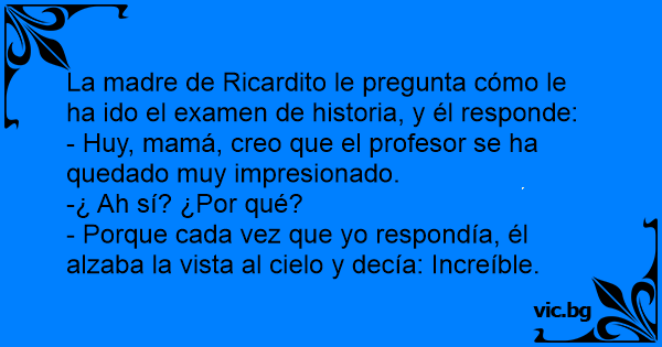 La madre de Ricardito le pregunta cómo le ha ido el examen de historia, y él responde: