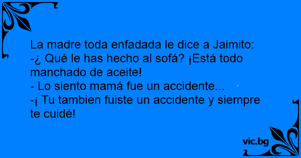 -¿ Qué le has hecho al sofá? ¡Está todo manchado de aceite!