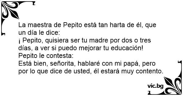 ¡ Pepito, quisiera ser tu madre por dos o tres días, a ver si puedo mejorar tu educación!