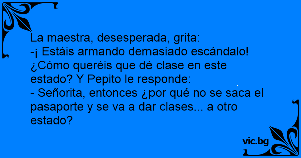 -¡ Estáis armando demasiado escándalo! ¿Cómo queréis que dé clase en este estado? Y Pepito le responde: