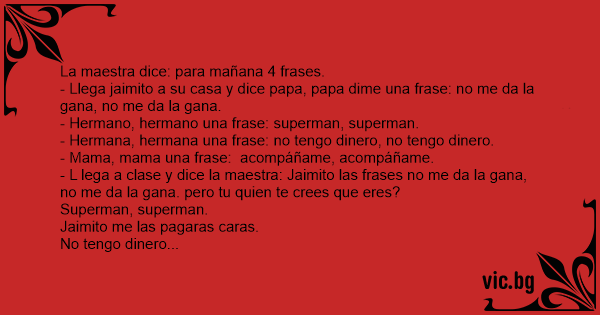 - Llega jaimito a su casa y dice papa, papa dime una frase: no me da la gana, no me da la gana.