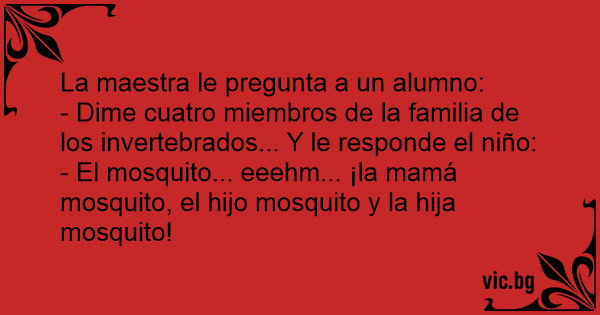 - Dime cuatro miembros de la familia de los invertebrados... Y le responde el niño: