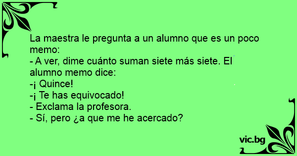 - A ver, dime cuánto suman siete más siete. El alumno memo dice: