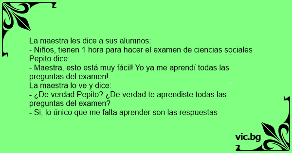 - Maestra, esto está muy fácil! Yo ya me aprendí todas las preguntas del examen!