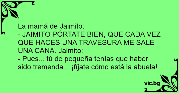 - JAIMITO PÓRTATE BIEN, QUE CADA VEZ QUE HACES UNA TRAVESURA ME SALE UNA CANA. Jaimito: