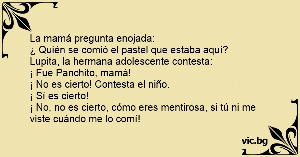 ¡ No, no es cierto, cómo eres mentirosa, si tú ni me viste cuándo me lo comí!