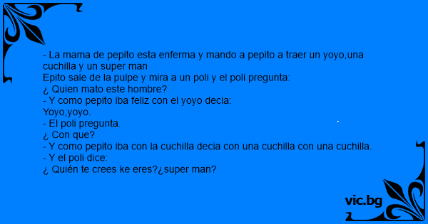 - La mama de pepito esta enferma y mando a pepito a traer un yoyo,una cuchilla y un super man